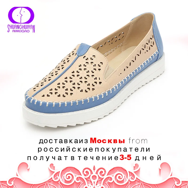 AIMEIGAO Autumn Spring Slip-on Hollow Out Women Shoes Soft Leather Square Heels Casual Sandals Solid Women High Heels Pumps