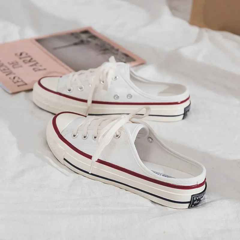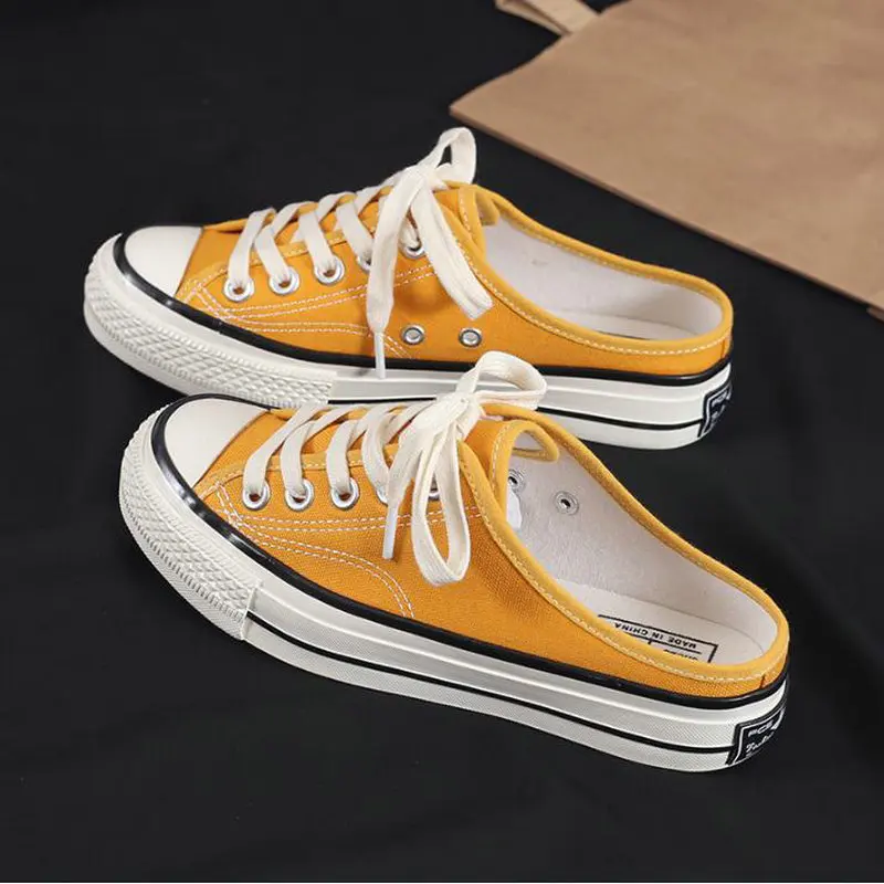 Related Product for New Spring 2019 Woman Half slipper Canvas Shoes flat sneakers women casual Comfortable loafer Drivi