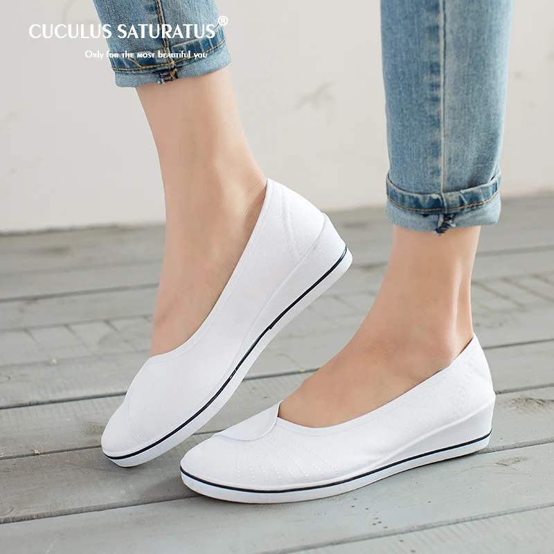 Cuculus Flats Casual Shoes Women Fashion Canvas Lightweight Loafers Female Shoes Woman Durable Rubber Shoes nurse shoes 433