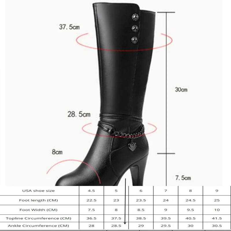 2019 Winter Women Genuine Leather High-heeled Boots Wool Lined Boots Fashion High Quality Motorcycle Boots Free Shipping