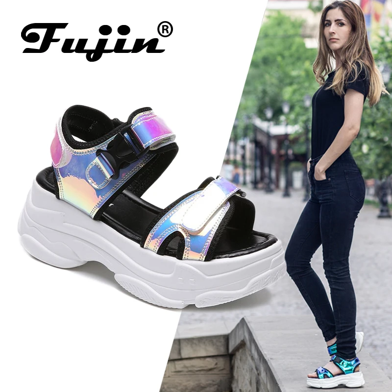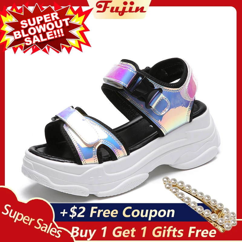 Cheap Fujin Brand Women Sandals 2020 New Fashion Ladies Casual Shoes Bling Wedges Buckle Strap Platform Shoes 5 CM Summer SandalsGet 80% OFF, VALID UNTIL TOMORROW